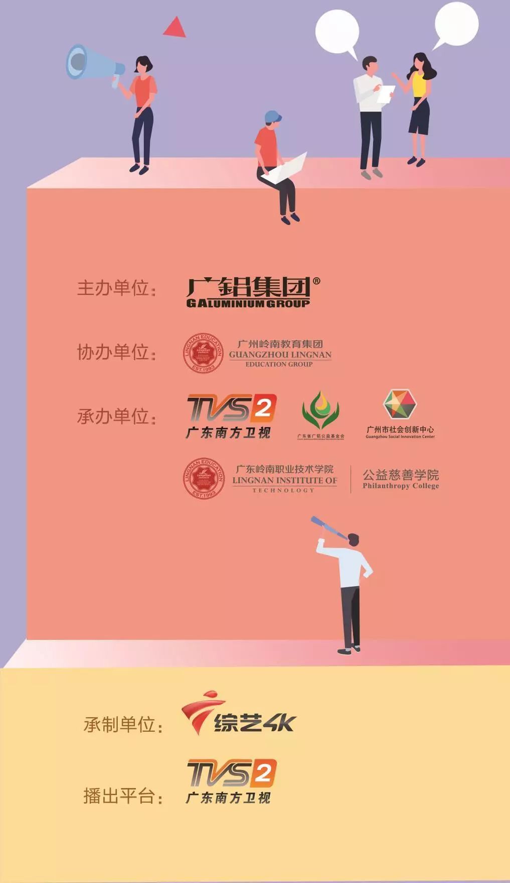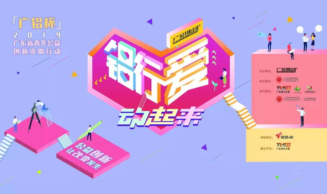 由廣鋁集團有限公司主辦,廣州嶺南教育集團協(xié)辦,廣東廣播電視臺南方衛視、廣東省廣鋁公益基金會(huì )、廣東嶺南職業(yè)技術(shù)學(xué)院公益慈善學(xué)院、廣州市社會(huì )創(chuàng )新中心承辦,廣東廣播電視臺綜藝4K頻道承制的《鋁行愛(ài) 動(dòng)起來(lái)“廣鋁杯”2019廣東省青年公益創(chuàng )新資助行動(dòng)》活動(dòng)正在熱烈進(jìn)行中。
