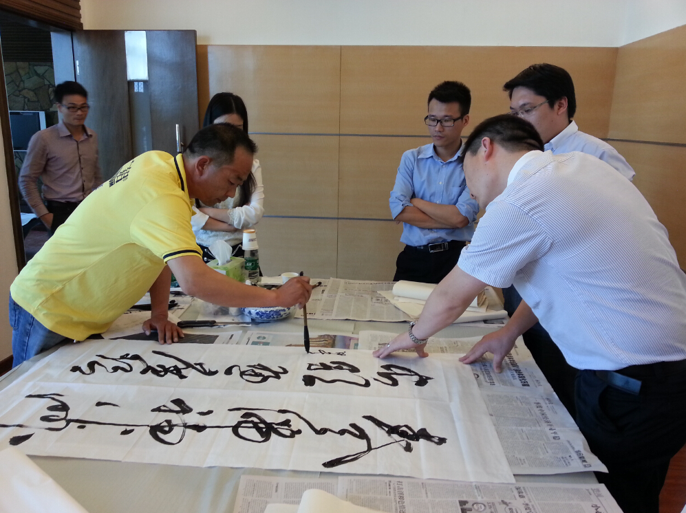 28日下午2時(shí),書(shū)法比賽正式開(kāi)始,首先開(kāi)始的是鋼筆書(shū)法,各個(gè)參賽同仁都使出自己的看家本領(lǐng),勾勒各自的創(chuàng )作,不到半小時(shí)一篇篇鋼筆字作品就此問(wèn)世。鋼筆字作品里面不乏佳作,書(shū)寫(xiě)手法有正楷的、隸書(shū)的、小篆等。接著(zhù),萬(wàn)眾期待的毛筆書(shū)法開(kāi)始了,參賽者們摩拳擦掌已久,對創(chuàng )作內容早已胸有成竹,只見(jiàn)廣鋁幕墻有限公司郭鴻杰正筆走龍蛇揮毫出狂草大作,主題立意和筆尖功夫皆為上乘。在其完成大作后,向大家介紹到他所用的毛筆已有13年的歷史了。書(shū)生指尖的筆,猶如劍客手中劍,十年磨一劍,高超的技藝需要漫長(cháng)的時(shí)間積累,終獲大成。正如廣鋁集團企業(yè)自身一樣,專(zhuān)注二十一年,全力打造“百年廣鋁”品牌。貴州廣鋁也在當天同步進(jìn)行書(shū)法比賽活動(dòng),藏龍臥虎的貴州廣鋁也是佳作涌現,令人津津樂(lè )道。