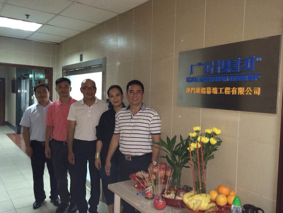 2014年8月14日上午11:00時(shí),澳門(mén)廣鋁幕墻工程有限公司(廣鋁幕墻澳門(mén)分公司)開(kāi)業(yè)盛典在澳門(mén)舉行,廣東廣鋁幕墻有限公司總經(jīng)理吳國權、總工程師胡欣出席了本次開(kāi)業(yè)盛典的剪彩儀式。澳門(mén)廣鋁幕墻公司位于澳門(mén)宋玉生廣場(chǎng)180號東南亞商業(yè)中心15樓C座。澳門(mén)廣鋁幕墻公司的成立標志著(zhù)廣東廣鋁幕墻公司正式吹響了進(jìn)駐澳門(mén)市場(chǎng)的號角。
