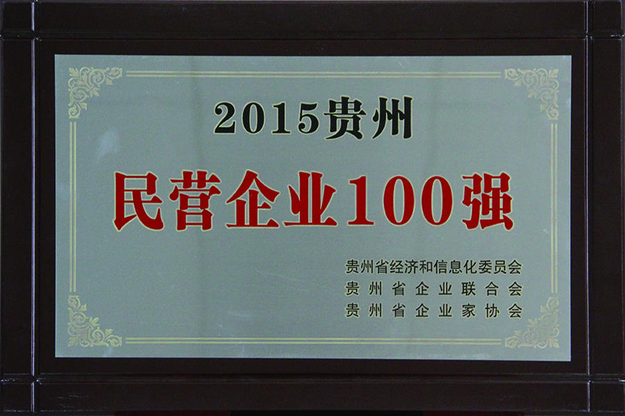 2015年8月26日,貴州省經(jīng)信委主辦的“2015貴州企業(yè)100強貴州民營(yíng)企業(yè)100強發(fā)布會(huì )暨全省第16屆創(chuàng )新成果表彰會(huì )”在省政協(xié)大樓舉行。