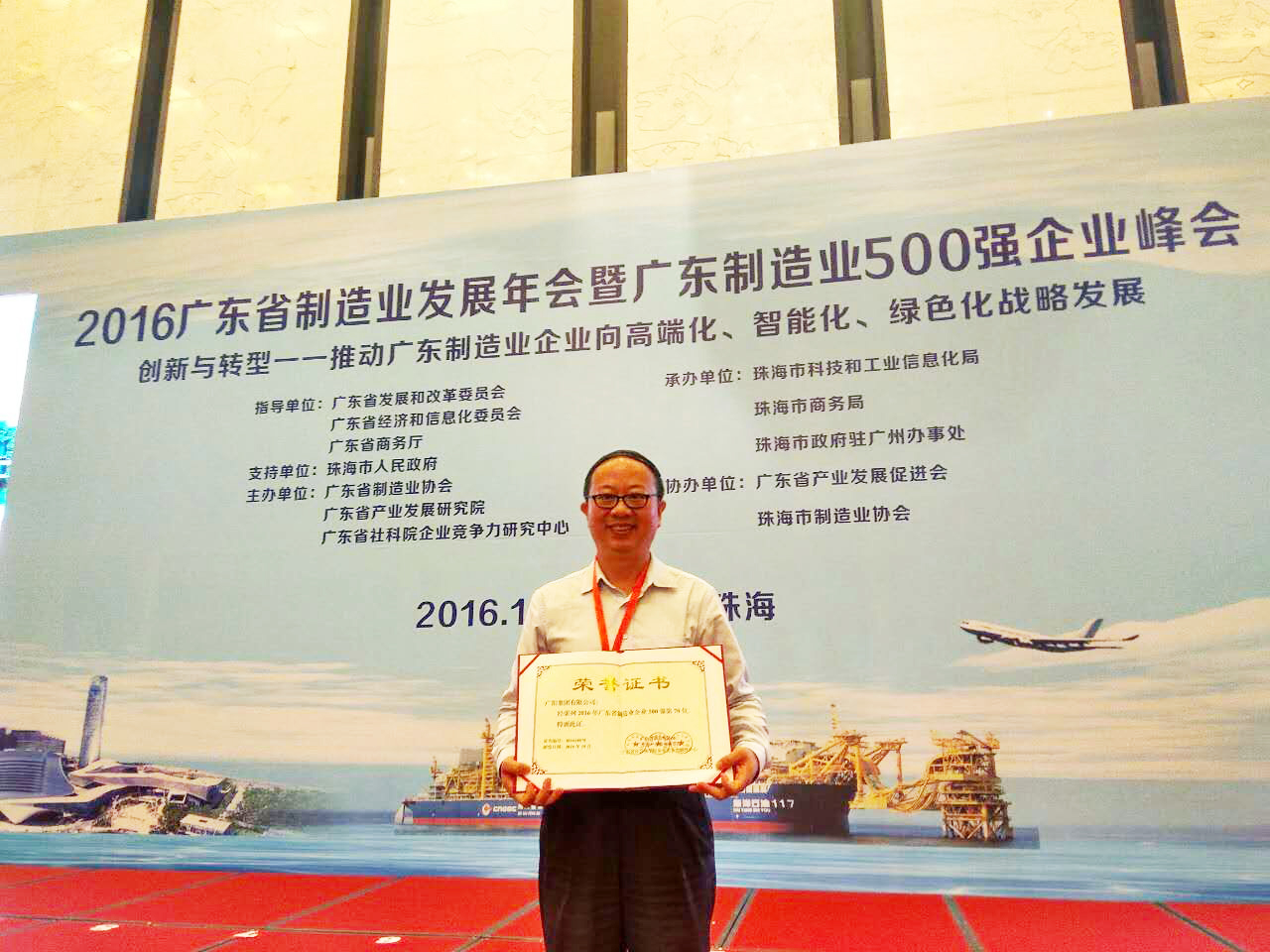 發(fā)稿時(shí)間:2016-10-1310月13日,2016年廣東省制造業(yè)發(fā)展年會(huì )暨廣東省制造業(yè)500強企業(yè)峰會(huì )在珠海市國際會(huì )展中心圓滿(mǎn)落幕。廣鋁集團喜獲2016年廣東省制造業(yè)500強企業(yè)第70名,生產(chǎn)總經(jīng)理劉煌萍代表公司參加了此次峰會(huì )并領(lǐng)取表彰證書(shū)。