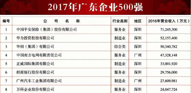 由廣東省企業(yè)聯(lián)合會(huì )、廣東省企業(yè)家協(xié)會(huì )聯(lián)合評選的2017年廣東企業(yè)500強榜單新鮮出爐!廣鋁集團有限公司榮獲“廣東企業(yè)500強”、“廣東民營(yíng)企業(yè)100強”兩項殊榮,展現了廣鋁集團雄厚的實(shí)力根基以及追求卓越、開(kāi)拓進(jìn)取的風(fēng)采。