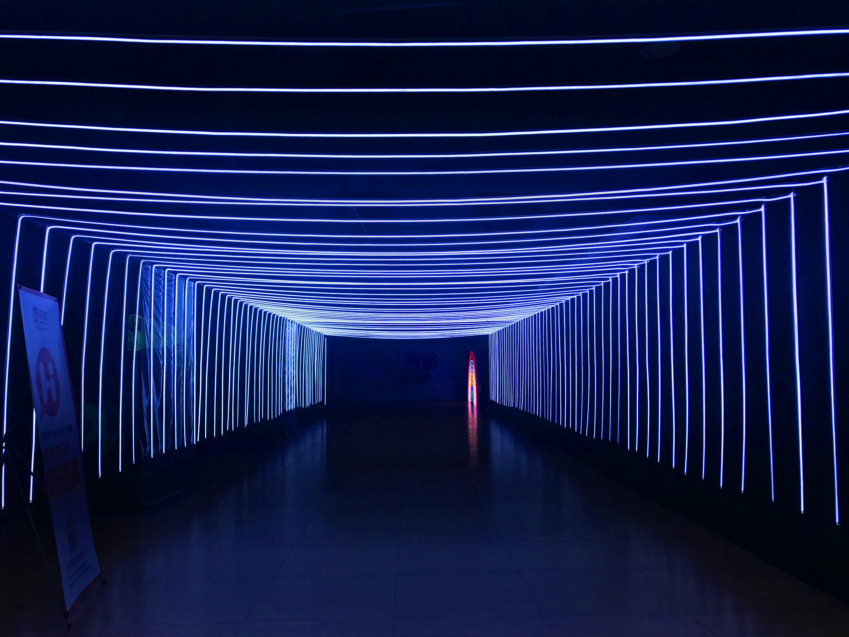 由光電組成的時(shí)光隧道,置身其中,仿佛穿梭于時(shí)空隧道,追溯過(guò)去探尋未來(lái)。