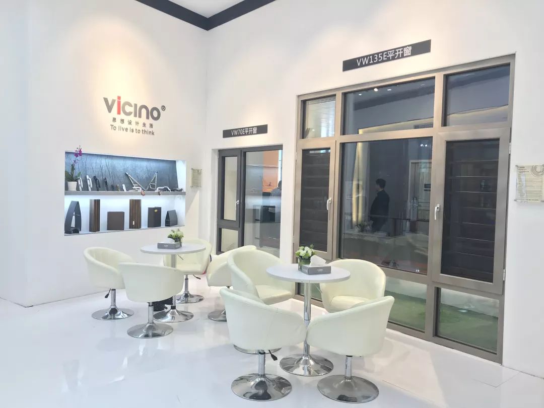廣鋁集團本屆展會(huì )設計簡(jiǎn)潔高端,以韋思諾vicino品牌為主,其中有隔熱平開(kāi)門(mén)、節能平開(kāi)窗、隔熱提升推拉門(mén)、推拉窗等,型材簡(jiǎn)潔而不失穩重,給人一種大氣而安全牢固的溫馨感,得到了眾多買(mǎi)家的認可和關(guān)注。