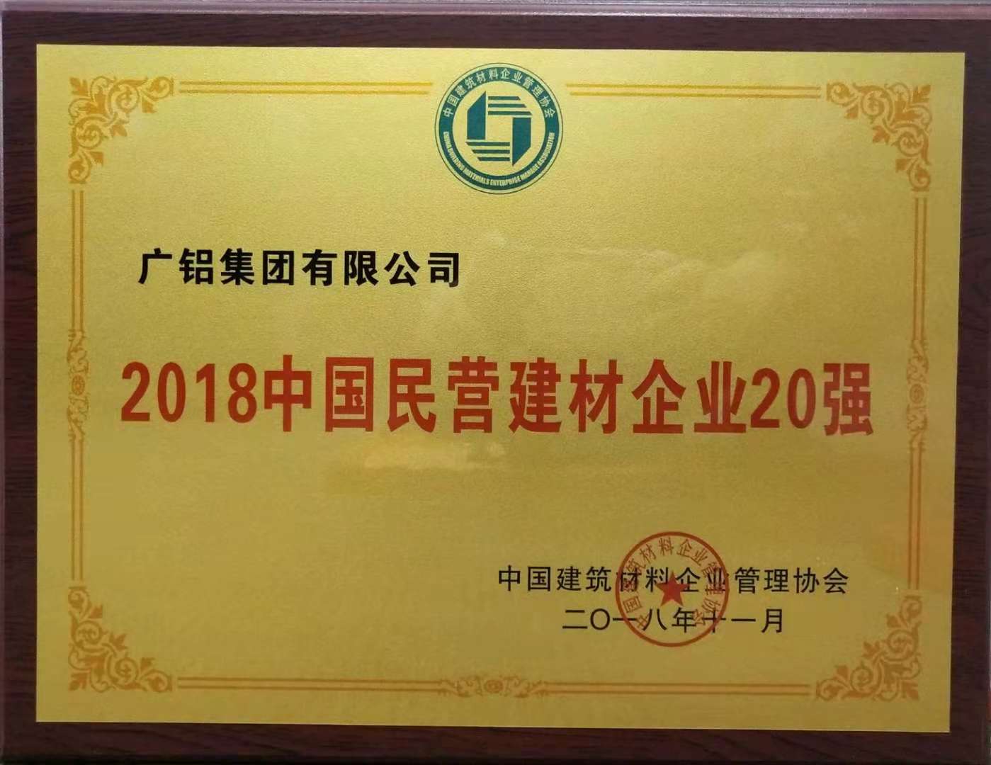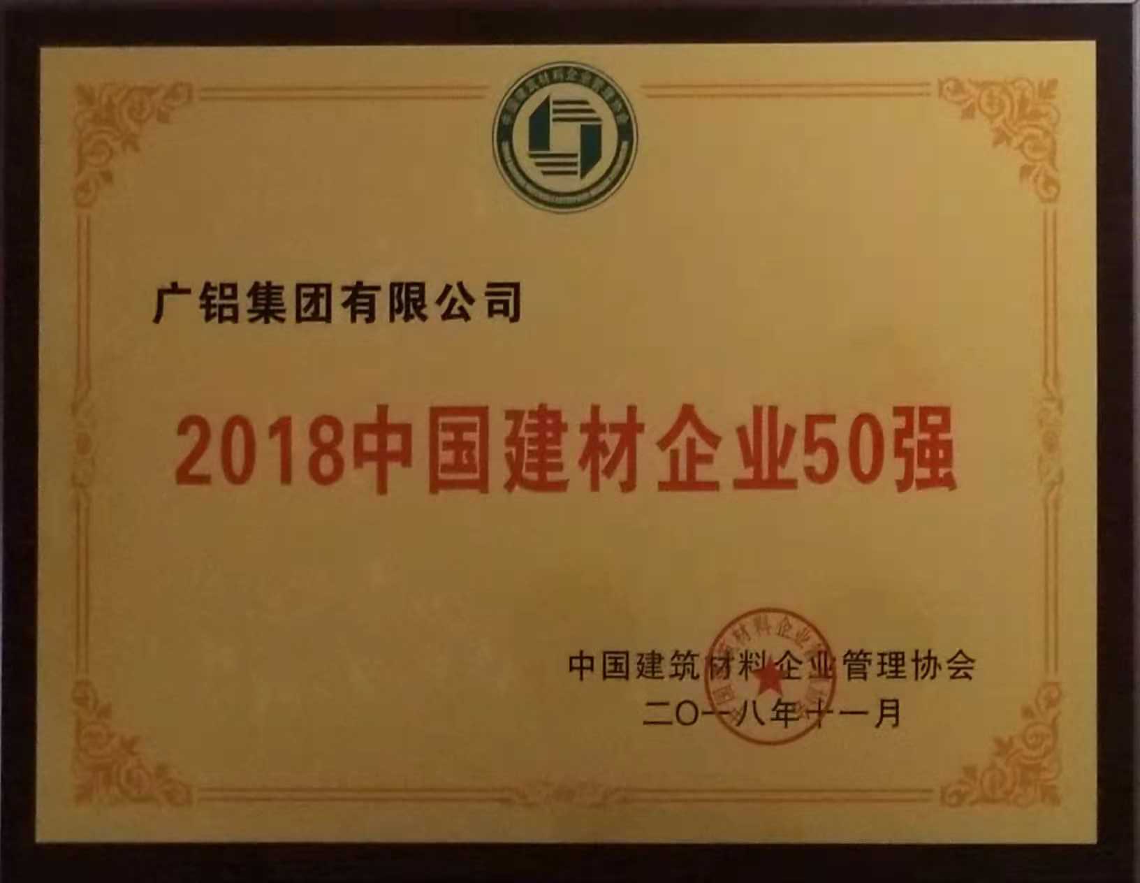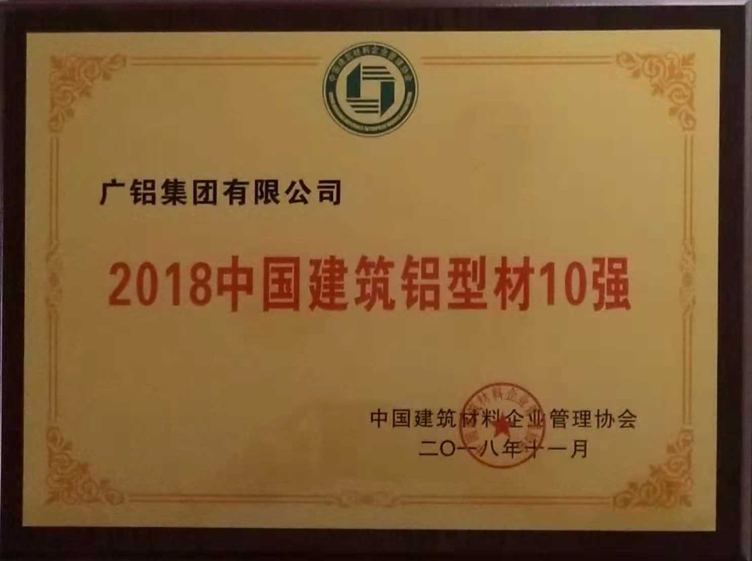 • 廣鋁榮獲“2018中國建材企業(yè)50強”、“2018中國民營(yíng)建材企業(yè)20強”、“2018中國建筑鋁型材10強”稱(chēng)號