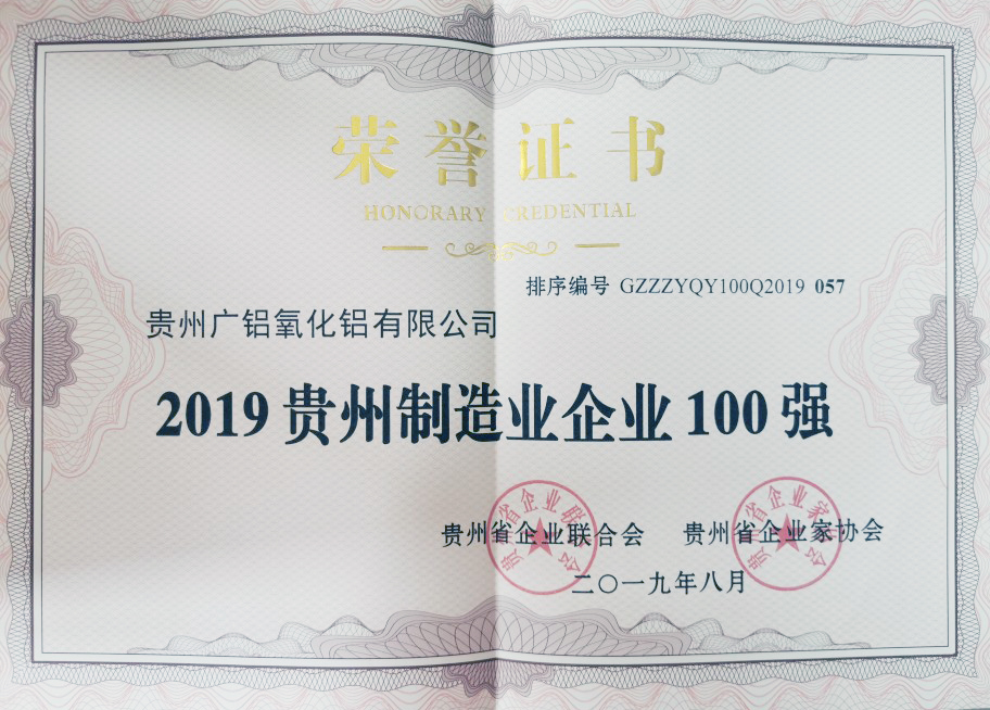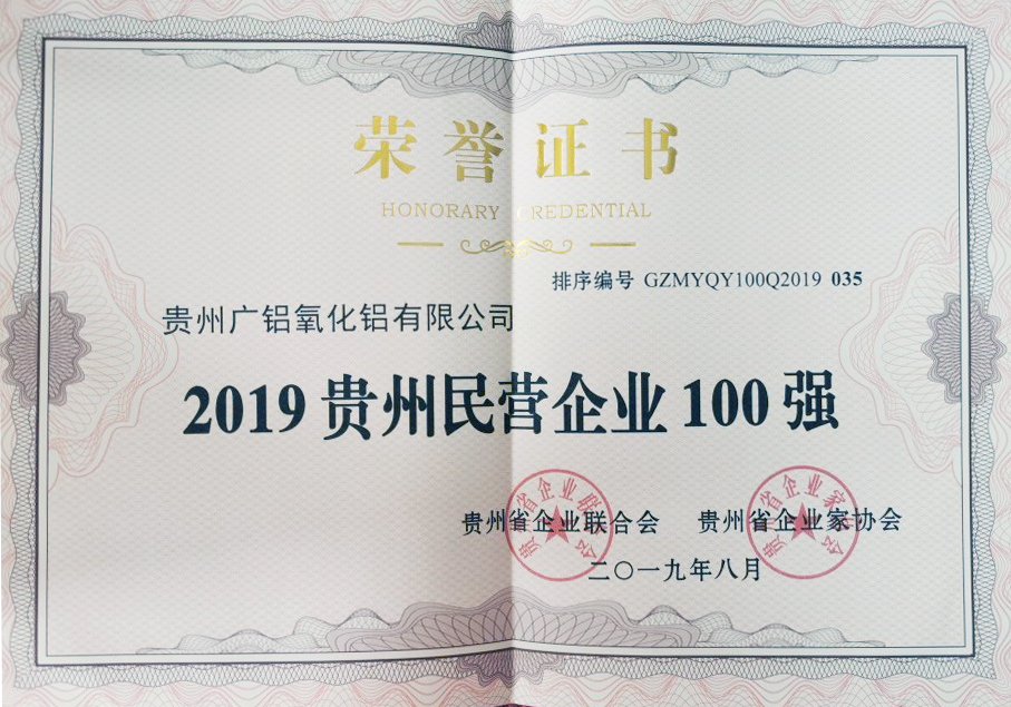 近日,貴州省企業(yè)聯(lián)合會(huì )和貴州省企業(yè)家協(xié)會(huì )對在2019年度為貴州經(jīng)濟社會(huì )發(fā)展作出突出卓越貢獻的貴州省優(yōu)秀企業(yè)、優(yōu)秀企業(yè)家、最佳誠信企業(yè)、誠信示范企業(yè)等予以表彰,貴州廣鋁氧化鋁有限公司與貴州茅臺集團、貴州通源集團等眾多實(shí)力企業(yè)均連續多年登上本次雙百強榜單。