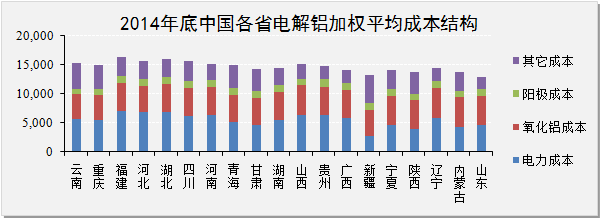 • 2014年我國電解鋁生產(chǎn)加權成本分析
