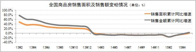 發(fā)稿時(shí)間:2015-06-15全國商品房銷(xiāo)售市場(chǎng)明顯回暖。國家統計局統計數據顯示:5月份全國商品房銷(xiāo)售面積累計增速同比下降0.2%,降幅環(huán)比收窄4.6個(gè)百分點(diǎn);銷(xiāo)售額實(shí)現2014年初以來(lái)首次正增長(cháng),累計同比增速為3.1%。銷(xiāo)售市場(chǎng)回暖主要體現在40個(gè)重點(diǎn)城市,非重點(diǎn)城市的投資開(kāi)發(fā)及銷(xiāo)售增速仍呈現下滑趨勢。研究認為,銷(xiāo)售市場(chǎng)回暖的主要原因在于國家政策調控作用引導了市場(chǎng)預期的轉變。
