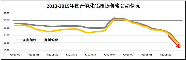 國內價(jià)格情況。統計期內,全國氧化鋁市場(chǎng)價(jià)格繼續保持了今年以來(lái)的下行趨勢,且下行幅度有所擴大。其中:12月國產(chǎn)現貨加權價(jià)為1694元/噸,環(huán)比下降11.7%,降幅環(huán)比擴大了3.4個(gè)百分點(diǎn);貴州均價(jià)為1680元/噸,環(huán)比下降10.8%,降幅環(huán)比擴大了3.4個(gè)百分點(diǎn)。研究認為,目前氧化鋁市場(chǎng)價(jià)格直線(xiàn)下浮屬于異?,F象,主要原因是電解鋁做空力量加劇了市場(chǎng)悲觀(guān)預期。