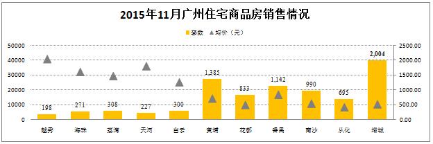 網(wǎng)簽數據顯示,11月份廣州地區住宅商品房共銷(xiāo)售8353套,環(huán)比上升1.2%,其中增城區銷(xiāo)售套數位居榜首;全市均價(jià)為15657元/平方,環(huán)比上升11.6%,其中增城區銷(xiāo)售均價(jià)為10608元/平方,略高于花都及從化均價(jià)。11月份住宅商品房量?jì)r(jià)齊漲的主要原因是政策效果顯現,購房需求逐漸增強。