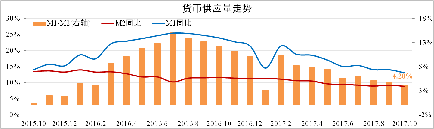 分析認為:政府嚴查消費貸、樓市降溫導致居民中長(cháng)貸放緩以及財政性存款超預期增加是M2再度放緩的主要原因。累積的財政存款將在11、12月大幅支出,預計11月M2小幅回升。