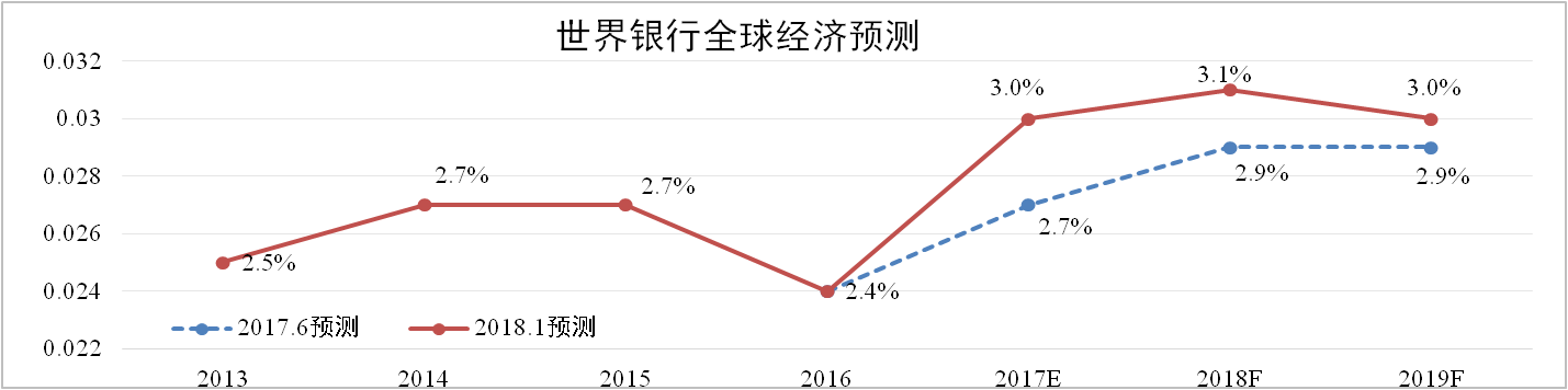 2018年1月9日世界銀行發(fā)布《2018年全球經(jīng)濟展望》報告,預測隨著(zhù)投資、制造業(yè)和貿易的持續復蘇,2018年全球經(jīng)濟將加快至3.1%。但在勞動(dòng)力和資本得到充分應用及各國央行逐步取消寬松貨幣的情況下,潛在增長(cháng)將會(huì )放緩,2019年經(jīng)濟增速將回落至3.0%。