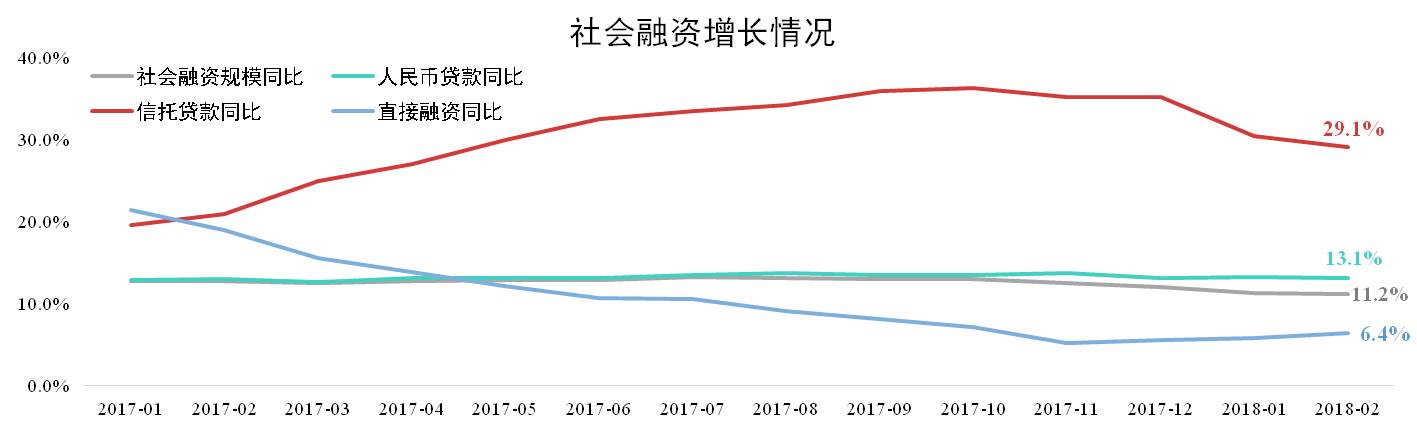 社會(huì )融資規模有所放緩。據人民銀行數據,2月份社會(huì )總融資規模同比增長(cháng)11.2%,與上月持平。合并1-2月數據剔除春節因素影響較去年多增5407億元,表明實(shí)際信貸需求不弱。