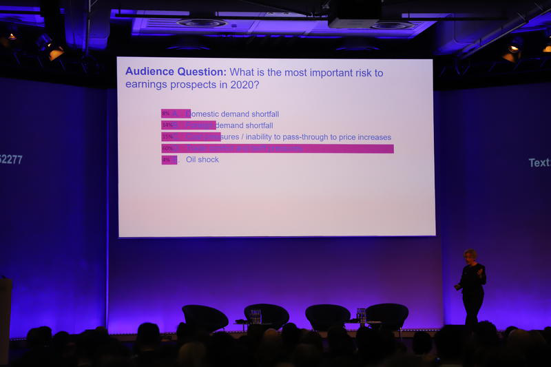 那么,影響2020年經(jīng)濟增長(cháng)的風(fēng)險因素中,哪個(gè)最重要呢?60%觀(guān)眾選擇了貿易紛爭和關(guān)稅壓力,其次是成本壓力/價(jià)格上漲(15%)、國外需求短缺(14%)、國內需求短缺(8%),最后是石油市場(chǎng)不穩定(4%)。我同意你們的選擇。但也有一些很有意思的值得討論的地方。