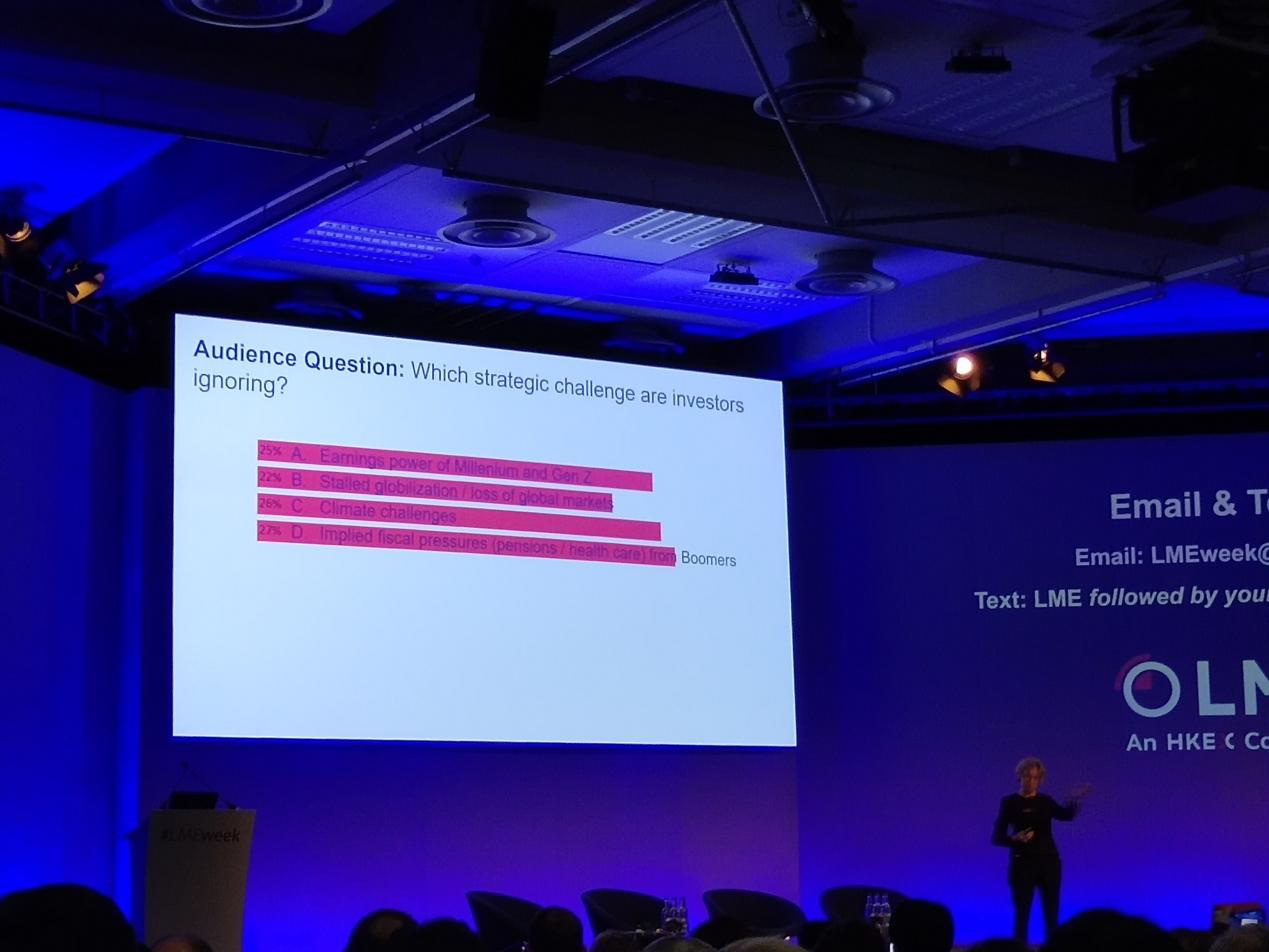 最后,投資者們忽略了哪些戰略挑戰呢?調查顯示,人們認為千禧年以及95年后出生的一代人的賺錢(qián)能力、全球化停滯、氣候問(wèn)題以及嬰兒潮一代面臨的財政壓力是被投資者忽略掉的挑戰。
